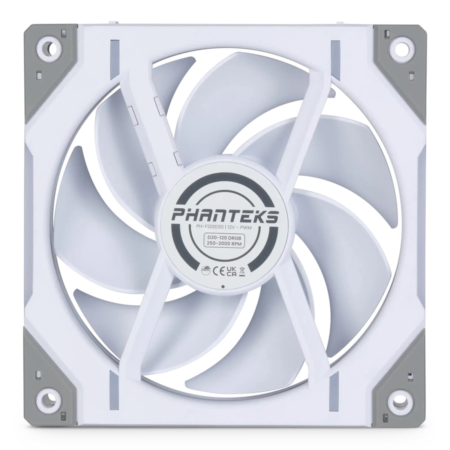 The Phanteks D30-120 comes equipped with integrated D-RGB lighting throughout its frame and blades on all sides. Multiple D30-120 fan frames can be linked together as one with bridge connectors and screw cover plates to reduce cables, resulting in extremely clean builds.
