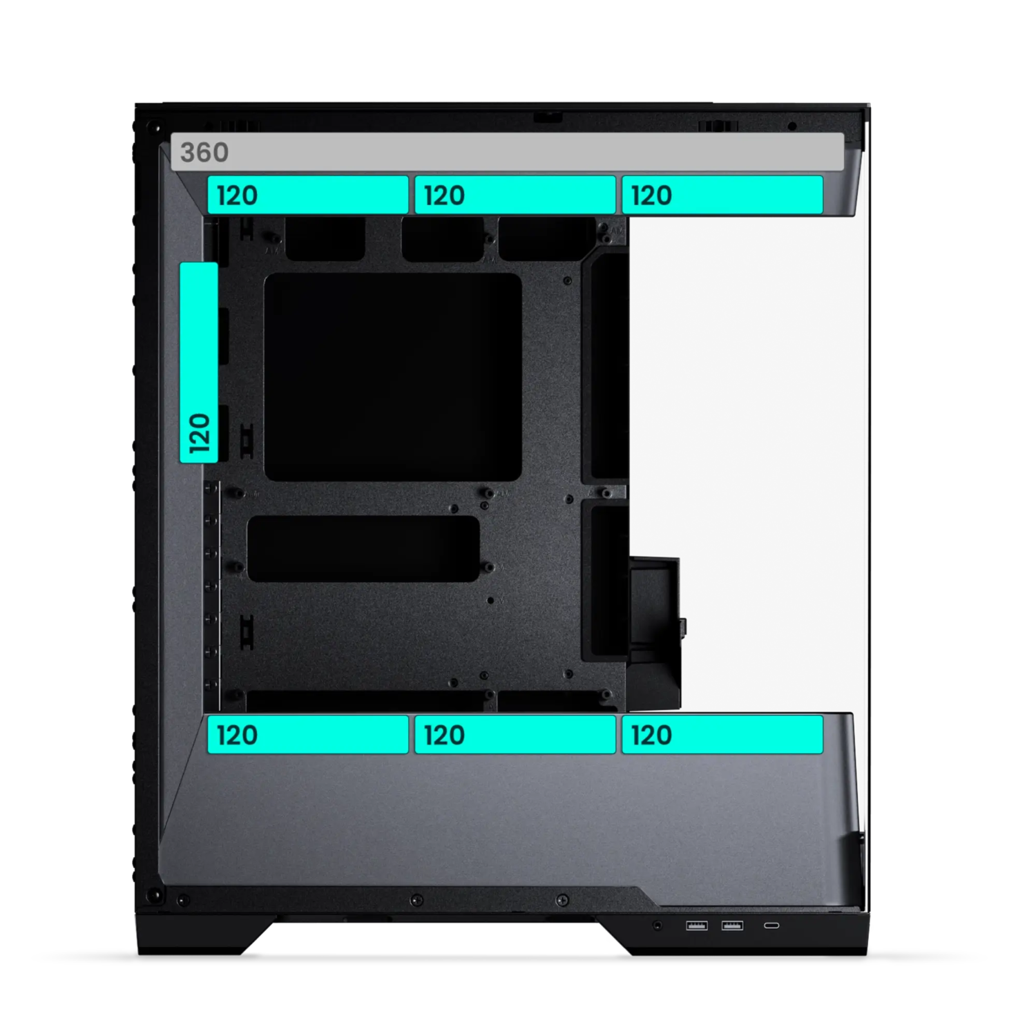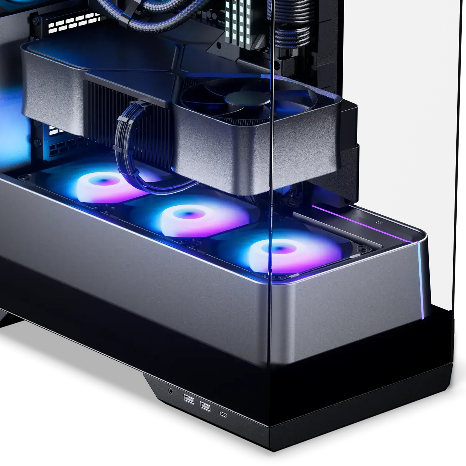 Having a vertical cooling system with triple intake fans in the bottom that directly cool the GPU and a dedicated top 360 radiator area makes the Evolv S2 perform in any condition.