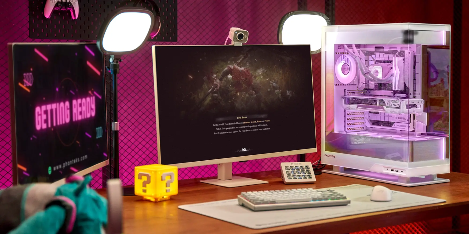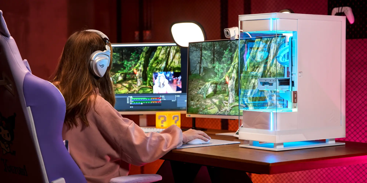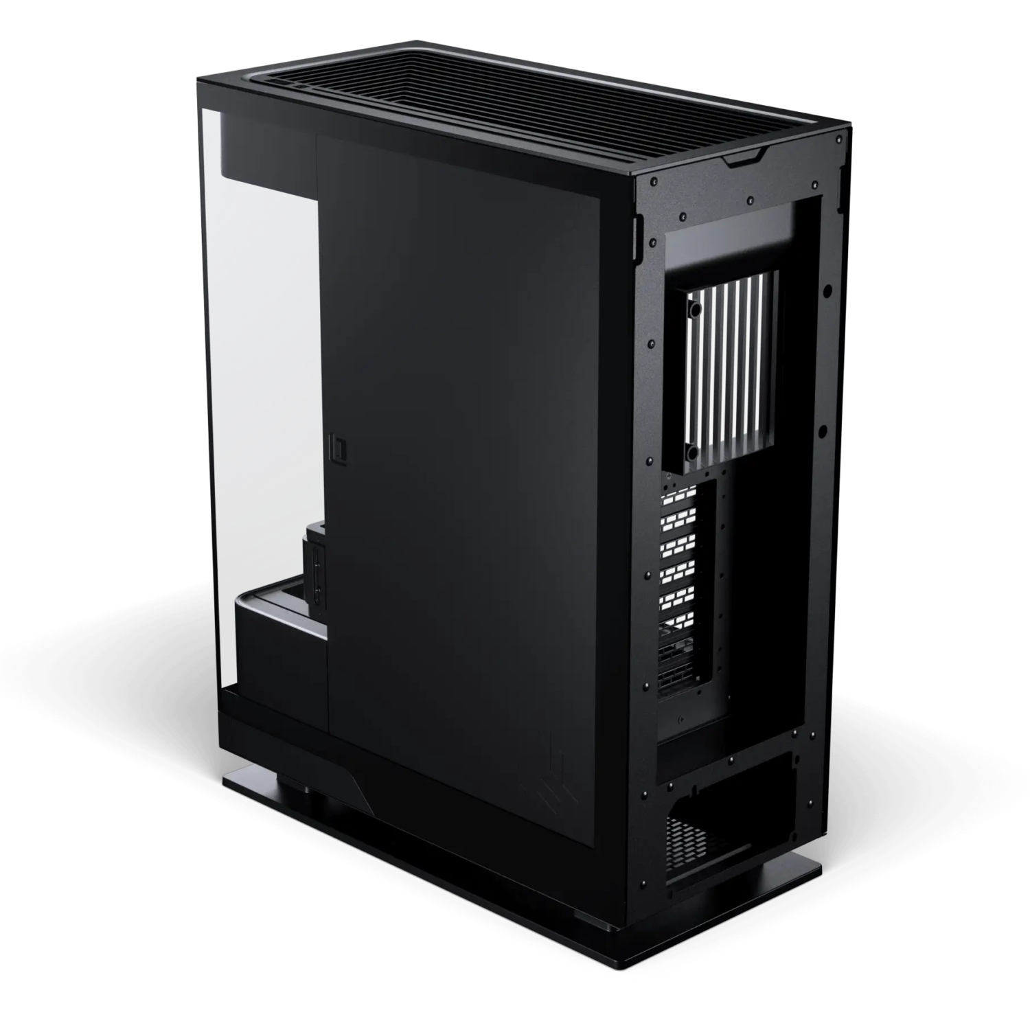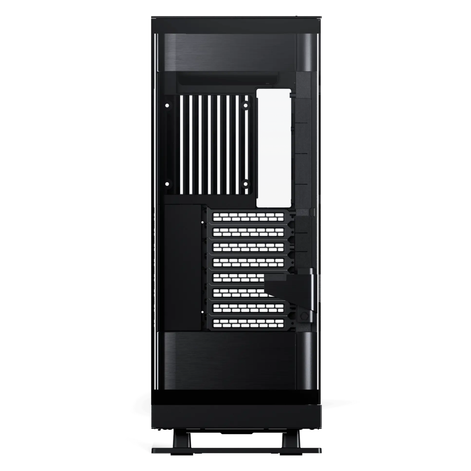 The Evolv X2 redefines the desktop computer with its see-through glass design, aluminum interior, and powerful vertical cooling solution. The entire chassis floats above its base, drawing in surrounding air and channeling it efficiently through the GPU and CPU. Hot air is expelled through the top ventilation, enhancing thermal performance.