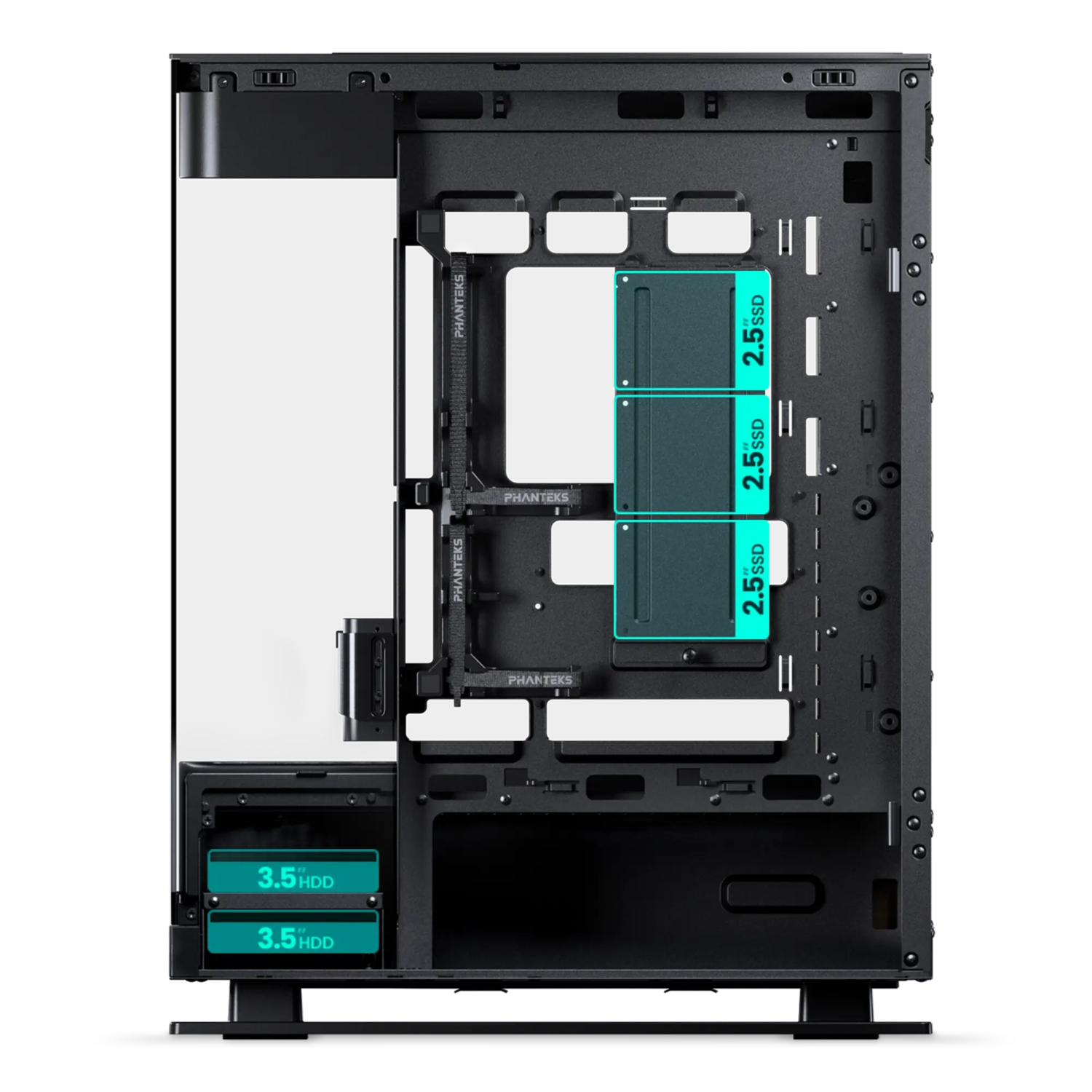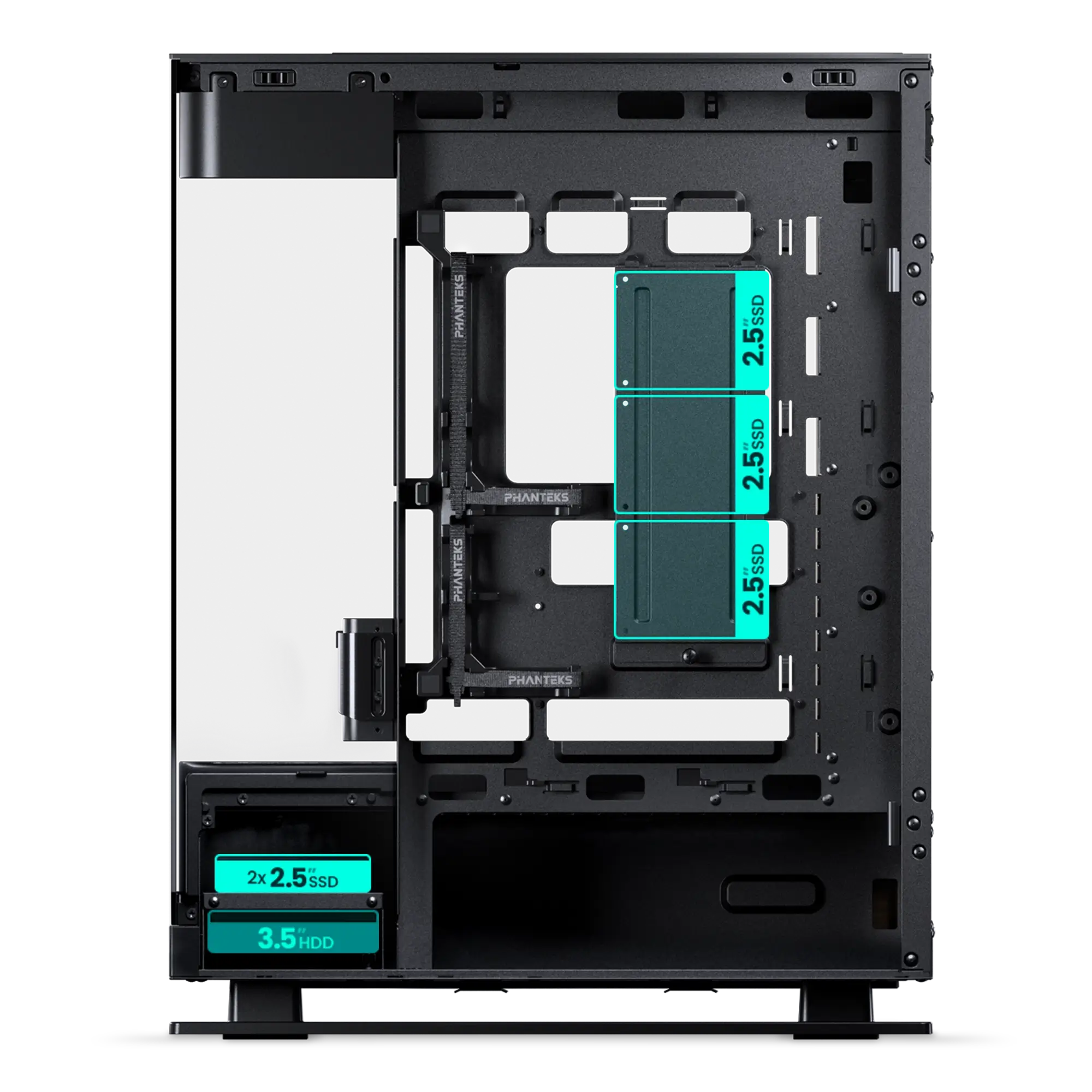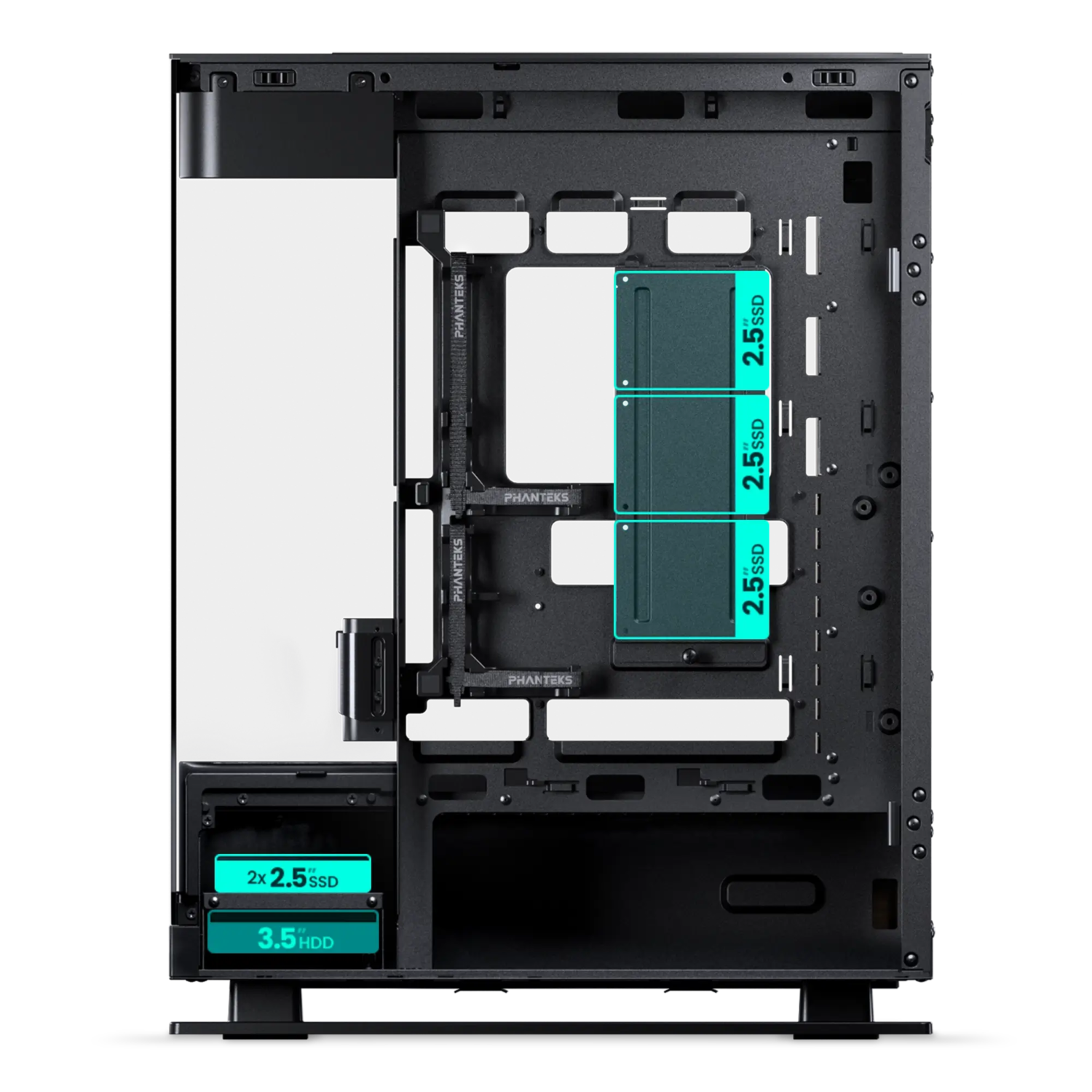 The interior of the Evolv X2 has been carefully designed to blend with the hardware components for a fully integrated look, with all cooling components sitting flush into the top and base. The integrated lighting and high-quality aluminum internal panels add flair to your system.