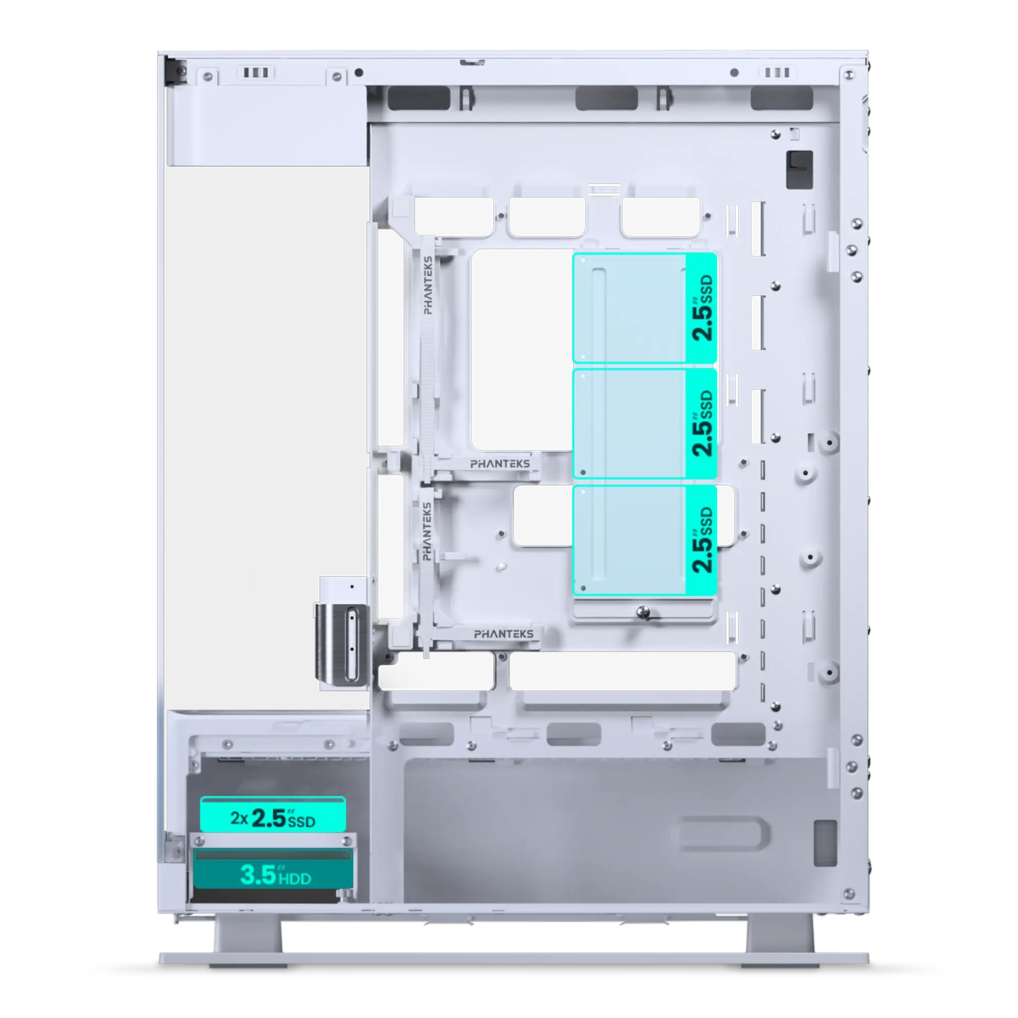 The interior of the Evolv X2 has been carefully designed to blend with the hardware components for a fully integrated look, with all cooling components sitting flush into the top and base. The integrated lighting and high-quality aluminum internal panels add flair to your system.