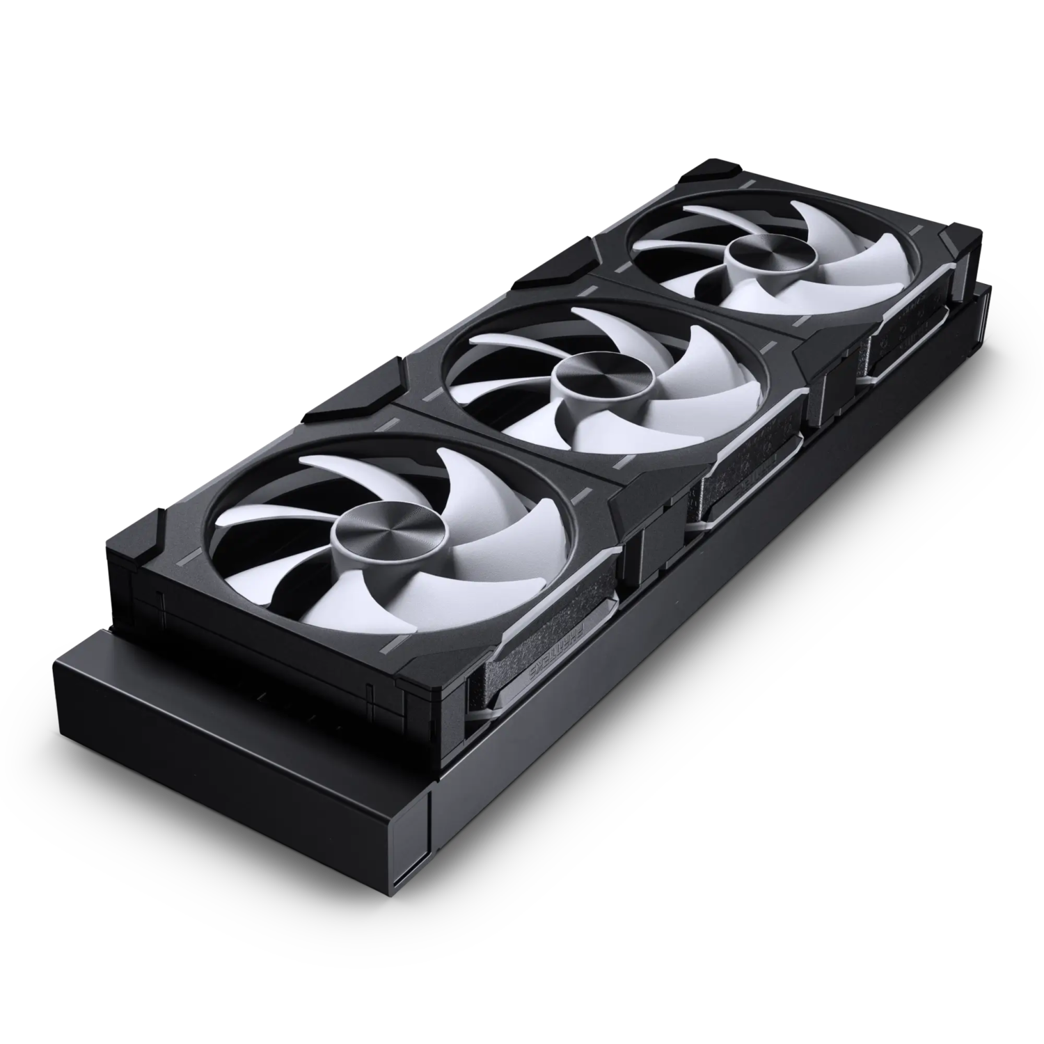 The Glacier One D30 AIO cooler is a high-performance cooling solution that offers a smooth D-RGB lighting solution thanks to the D30 fans. The Glacier One D30 AIO cooler equipped with D30 fans, can be daisy-chained and controlled through a single cable. Its large copper base and fin array make it suitable for use with high-end CPUs, while its design allows for maximum clearance with motherboard and RAM components.
