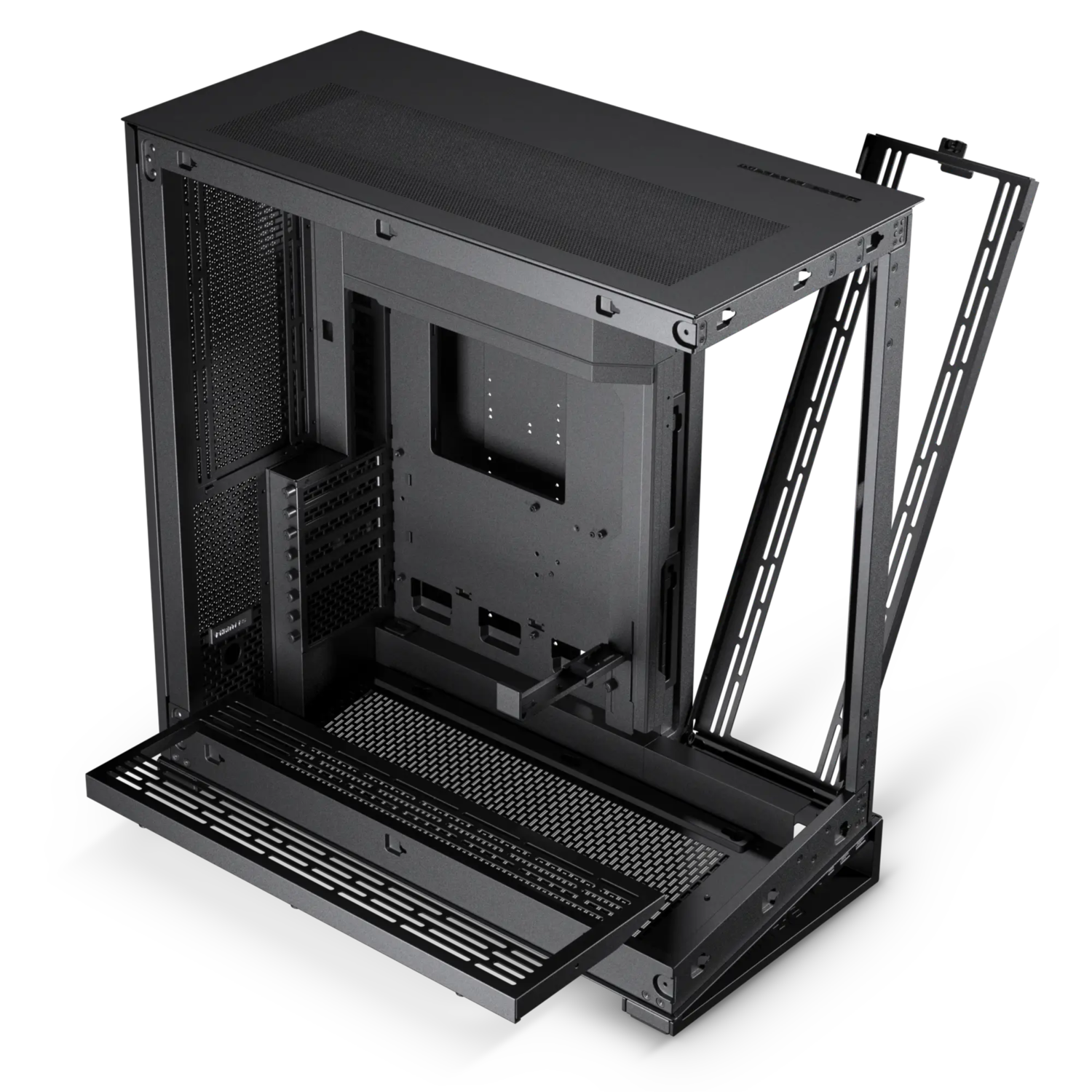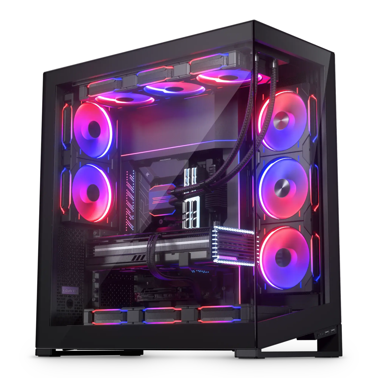 The Phanteks NV9 is a full-tower chassis, featuring a stunning near-seamless glass view and support for twelve 140 mm fans and triple 420+280 radiators simultaneously. Following the same unmistakable purpose design of the NV7, it highlights the system components with the mainboard at its center. Combined with a strong and defining outer frame, it captures and accentuates the hardware components.