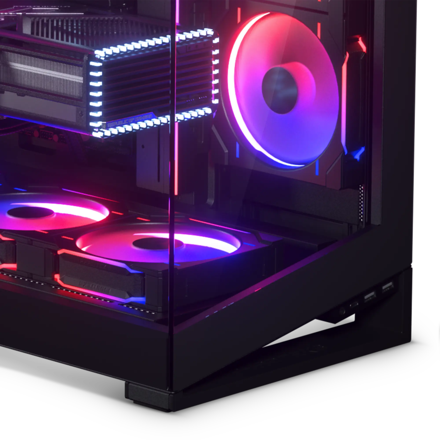 With a clean design from all sides, the NV9 allows you to place your system freely without the traditionally messy rear side. The glass panels offer a near-seamless view of the inside to further focus on the system components.