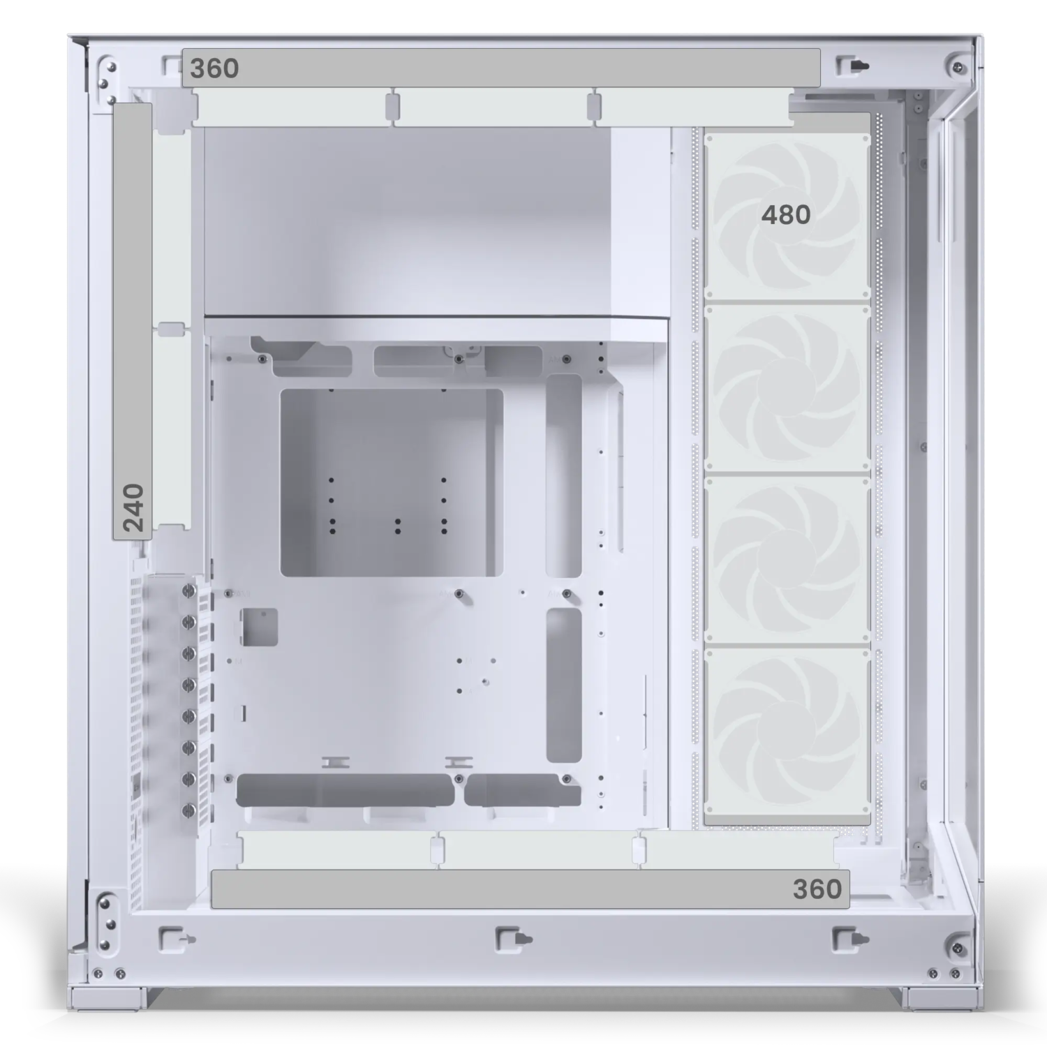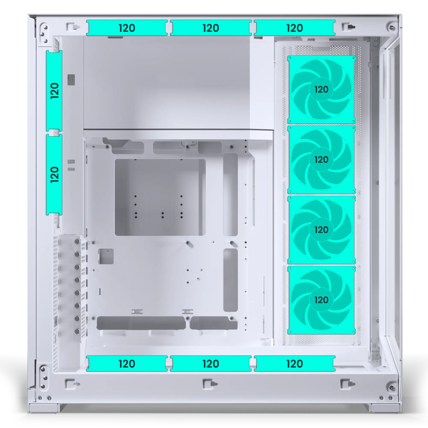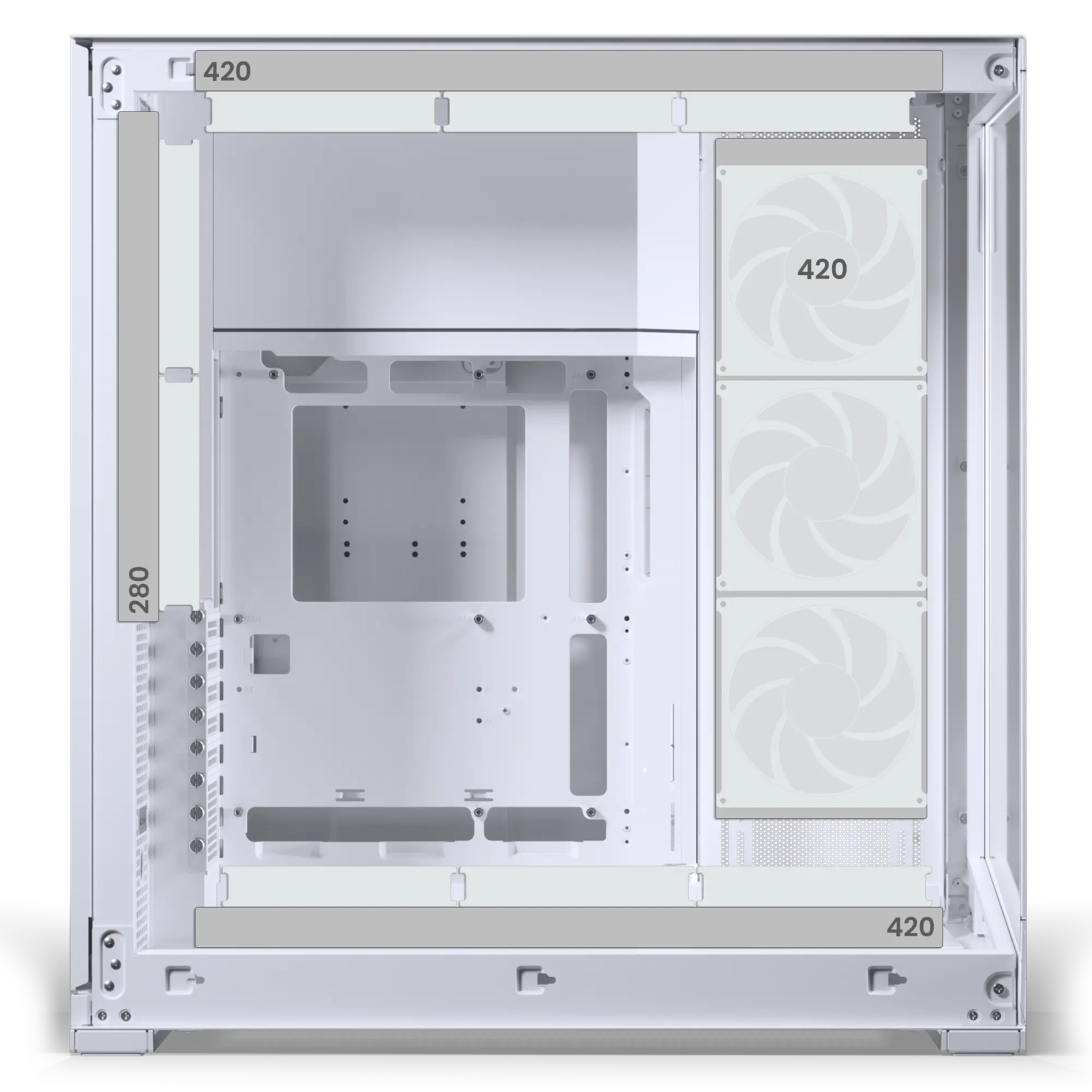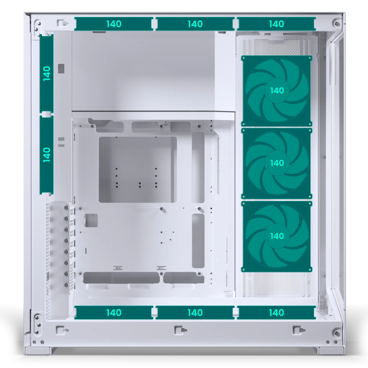 The Phanteks NV9 is a full-tower chassis, featuring a stunning near-seamless glass view and support for twelve 140 mm fans and triple 420+280 radiators simultaneously. Following the same unmistakable purpose design of the NV7, it highlights the system components with the mainboard at its center. Combined with a strong and defining outer frame, it captures and accentuates the hardware components.