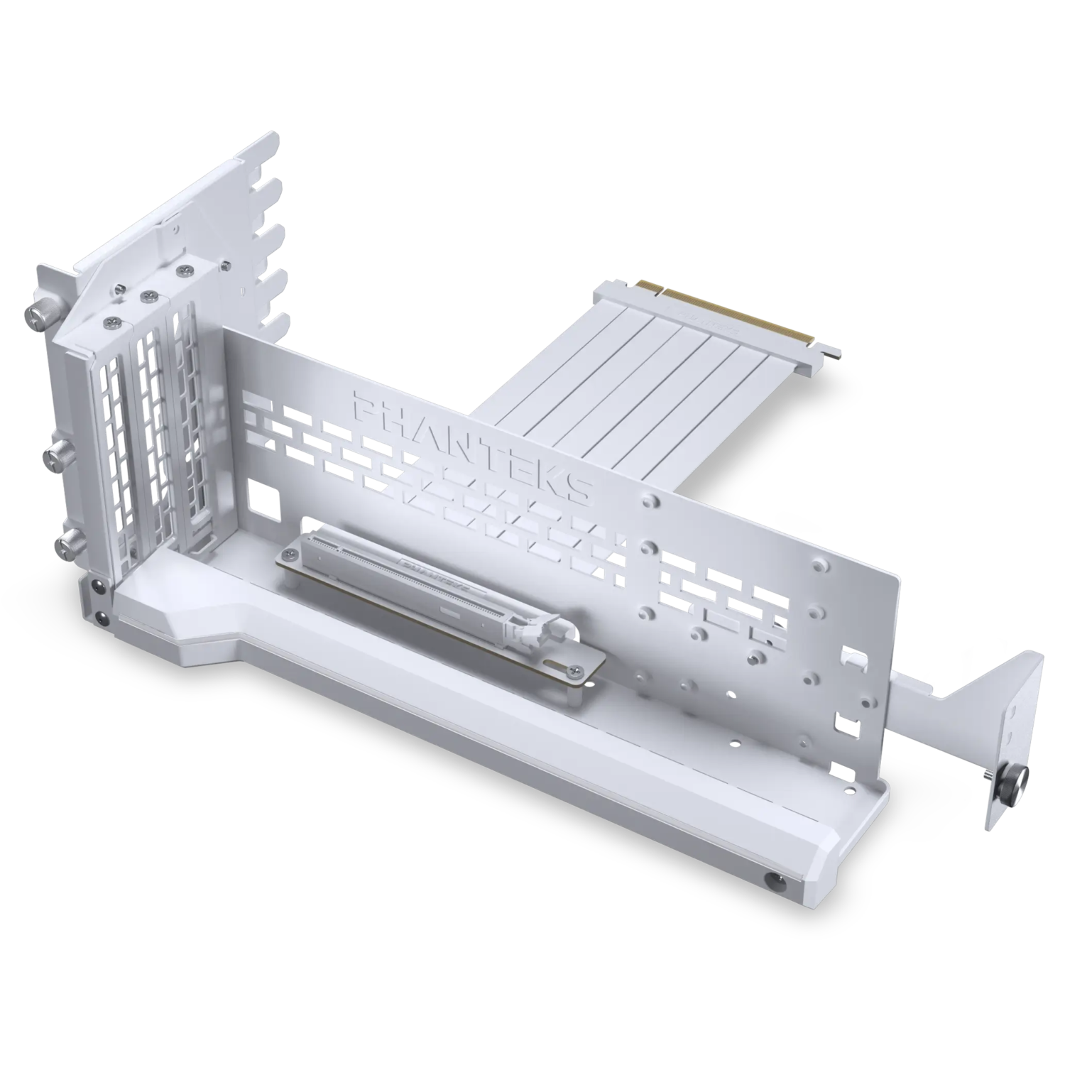 The Premium GPU bracket combines flexibility and style to bring focus to graphics cards in a way only Phanteks can. The bracket is fully supported in vertical orientation but can also be adjusted up to 30 degrees to create a visually appealing display.