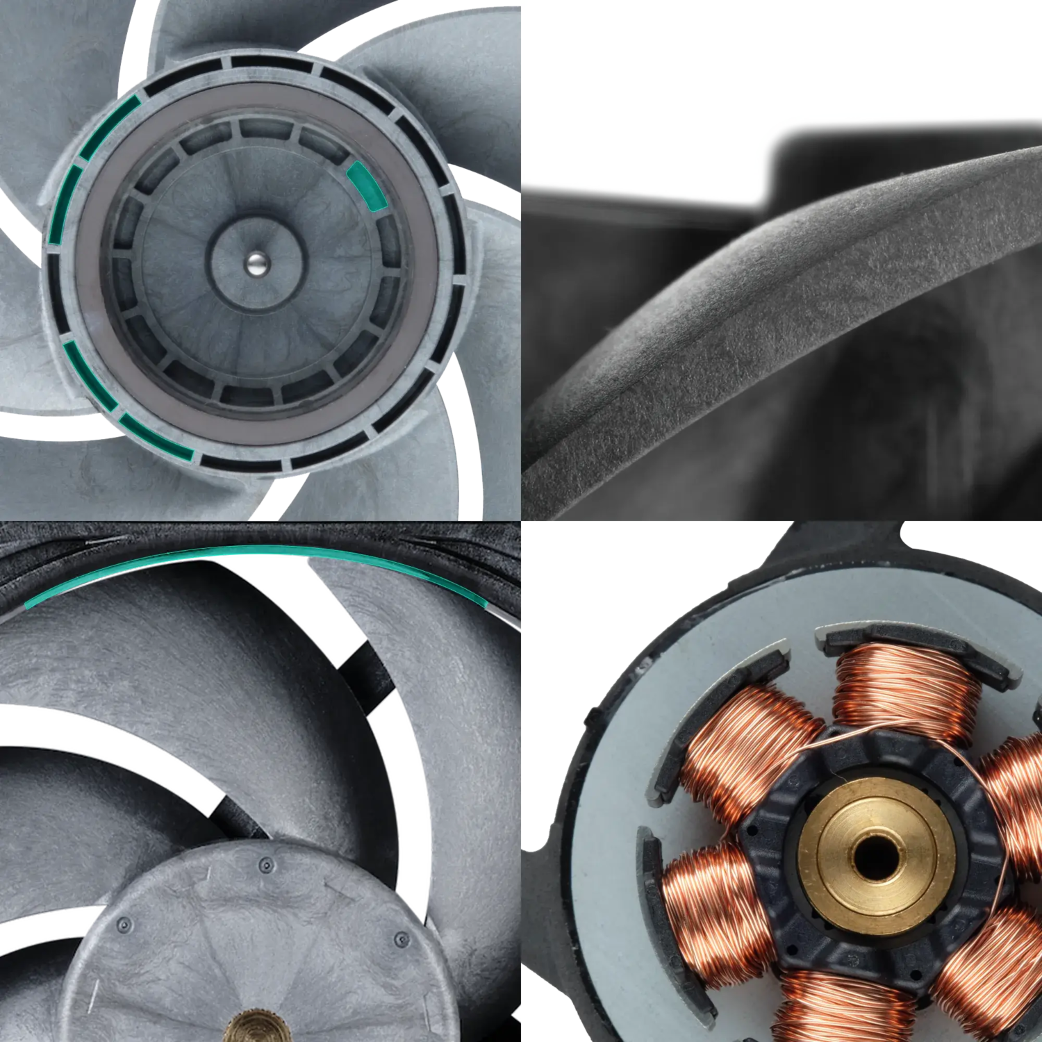 The T30 is designed with exceptional aerodynamic features, which require high-precision manufacturing. LCP enables this thanks to its great material properties. The tip of the fan blade has a continuous and small clearance (0.5 mm) to reduce turbulence and deliver unparalleled noise-normalized performance.