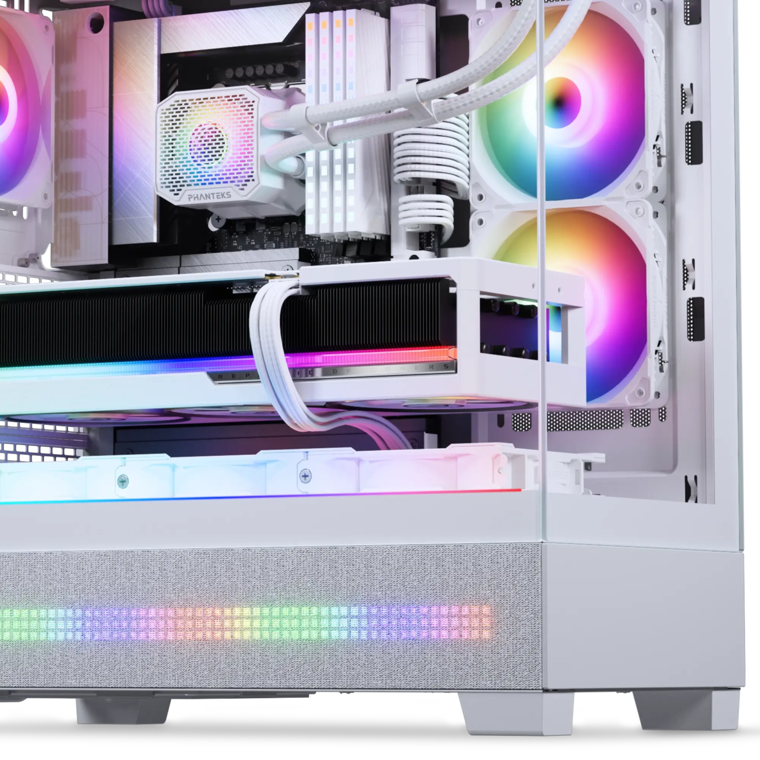 Digital-RGB from Phanteks is compatible with Asus Addressable-equipped motherboards and MSI Mystic Light Rainbow-equipped motherboards. Check with the Motherboard specifications if your motherboard has a ‘AURA Addressable Header’ or a ‘Mystic Light Sync Rainbow header’ with 3 pins.