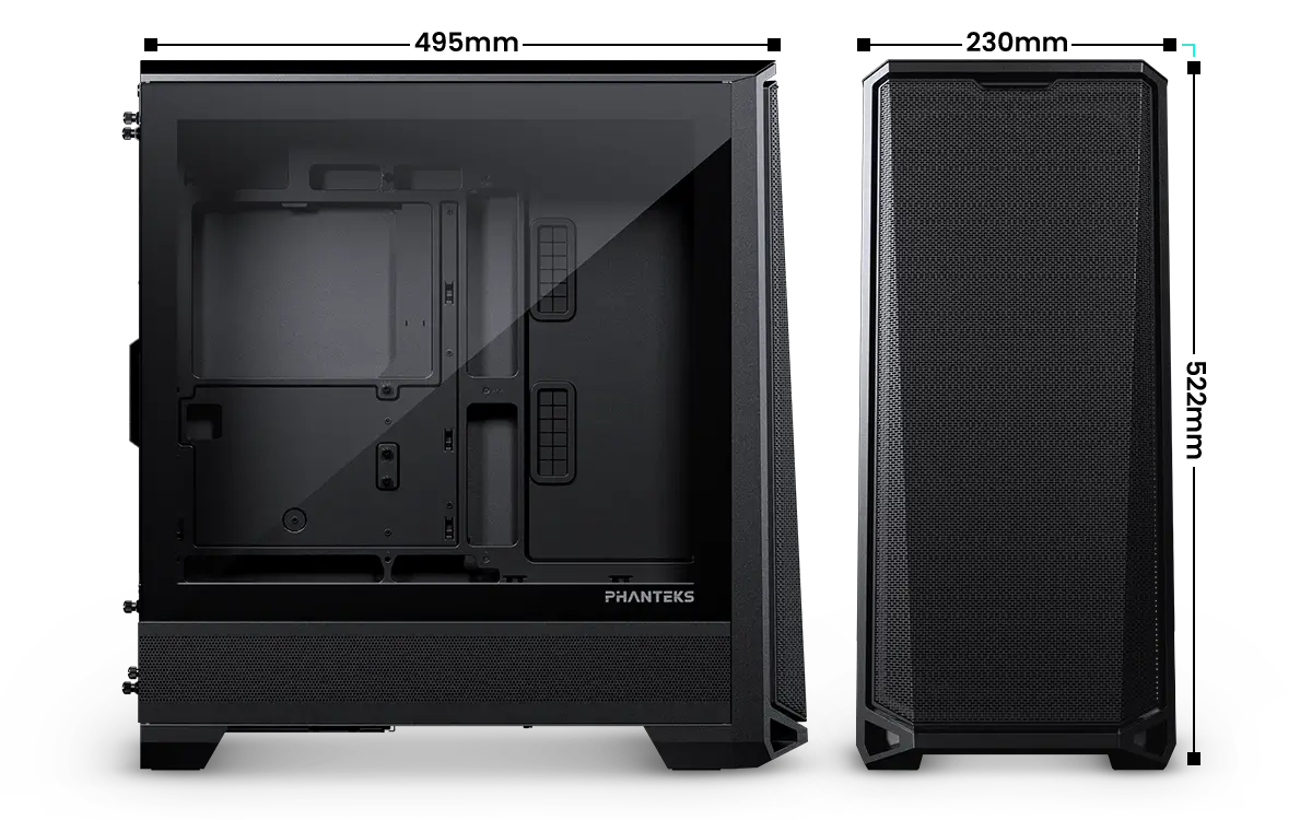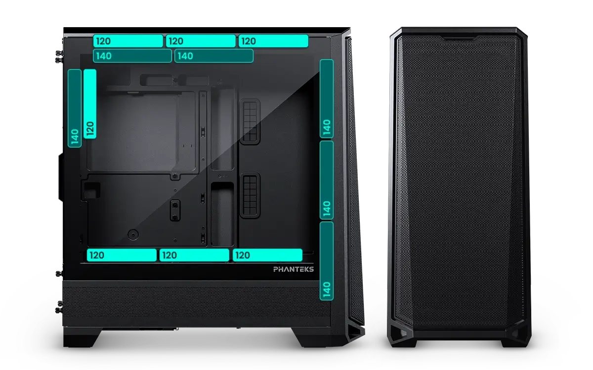 The G400A is the upgraded successor to the popular P400A, featuring a completely redesigned and more spacious chassis. It’s perfect for clean, modern hardware setups, easily accommodating even the largest graphics cards while leaving ample room for cable management. With up to 10 fan mounting points, support for 140 mm fans, and dedicated radiator space at the top, cooling performance has been significantly enhanced.
